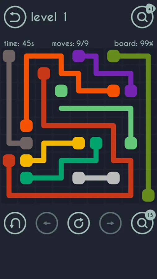 "let's FLUX" is an addictive puzzle game that has 1500 free levels organized by board size(from 5x5 to 14x14) and difficulty(easy, medium, hard). Hints are available if you ever get stuck. You get 10 free hints when you purchase the game. More hints and 1500 additional levels(from 5x5 to 14x14) are available for purchase.