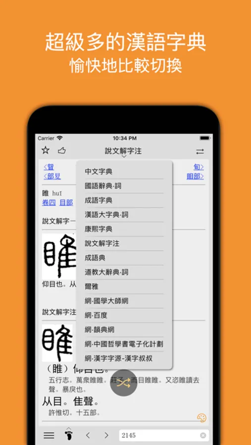 支援7W+漢字的搜尋與顯示,這是一本你不容錯過的漢語辭典大集合app。