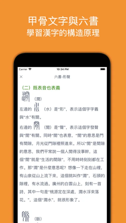 該功能可以讓您瞭解漢字的構造原理,並能練習漢字甲骨文構造,以及如何演變成楷書的書寫模式。