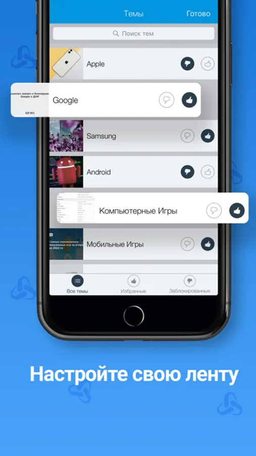 - Ваша собственная лента новостей - выбирайте темы, за которыми вы хотите следить, темы, которые вы хотите заблокировать, и темы, по которым вы хотите получать уведомления! Не тратьте время на новости, которые вам неинтересны!