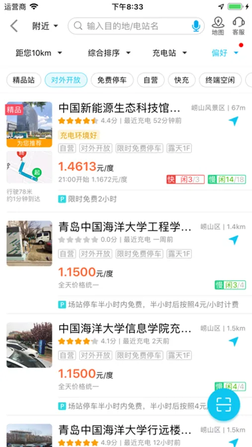 一键找到最方便、服务更优的充电站并导航到目的地。