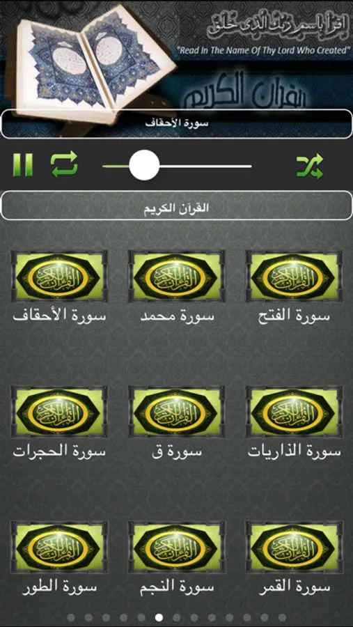 يدعم خاصية تكرار السورة والانتقال التلقائي للسورة التالية