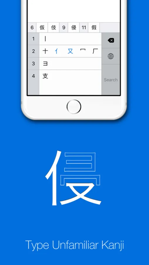 KanjiKey lets you type Japanese kanji by selecting their simpler components. Every kanji is made up of smaller pieces, and to type a kanji using KanjiKey, all you need to do is find a couple pieces that you recognize.