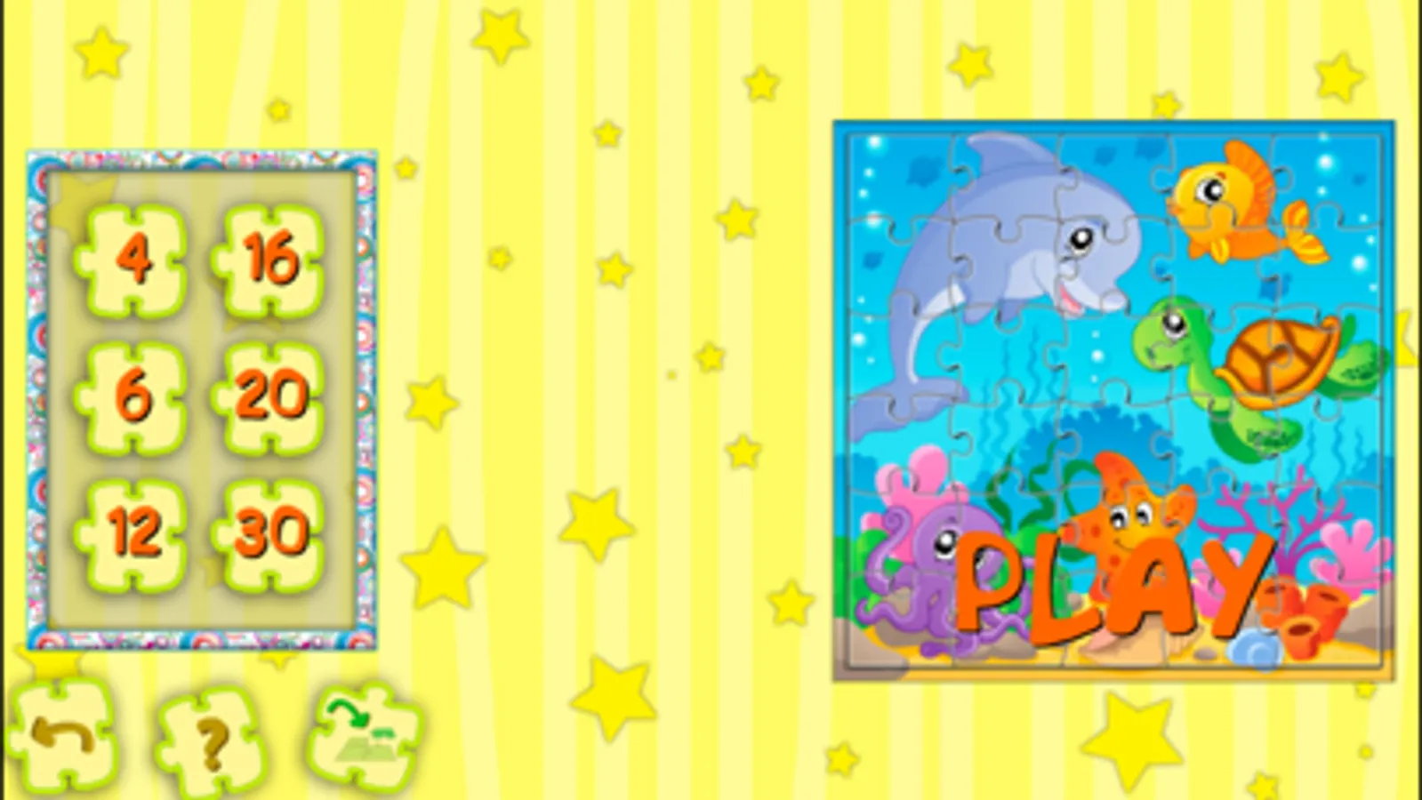 You can select one of 6 levels of difficulty - from 4 elements of puzzle, up to 30, so to collect puzzles will be interesting to children of any age.
