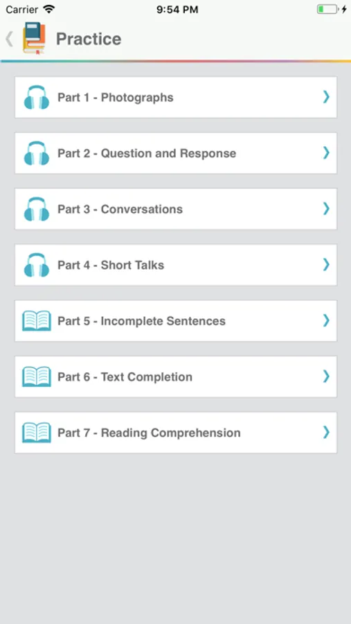 2. Simulation Test: All 7 parts of the test are created to be similar to the real exam.