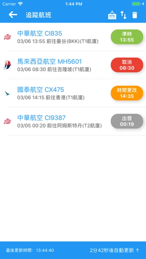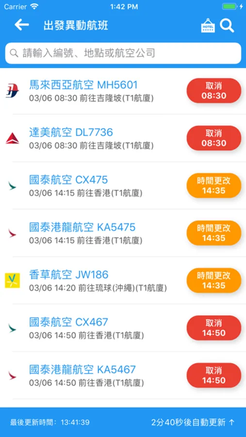 異動航班 - 航班時間更動或取消一手掌握不錯失!