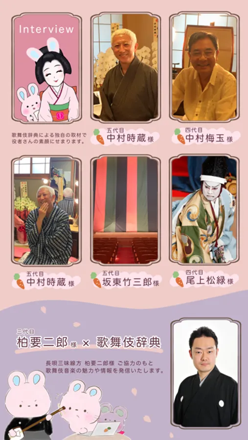 歌舞伎役者の方に直接お話を伺ったインタビュー記事もご覧いただけます。