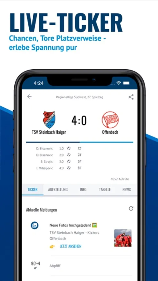 LIVE - Mit unseren Livetickern erhältst du alle Infos zum Spiel deiner Mannschaft und Bilder sowie Videos direkt vom Rasen – wie eine mobile Sportschau.