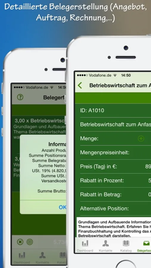 Manage your contacts (interested parties, customer), products (items, material, time record) and create fast and easy vouchers like orders, offers, packing slips or invoices for purchase and sales.