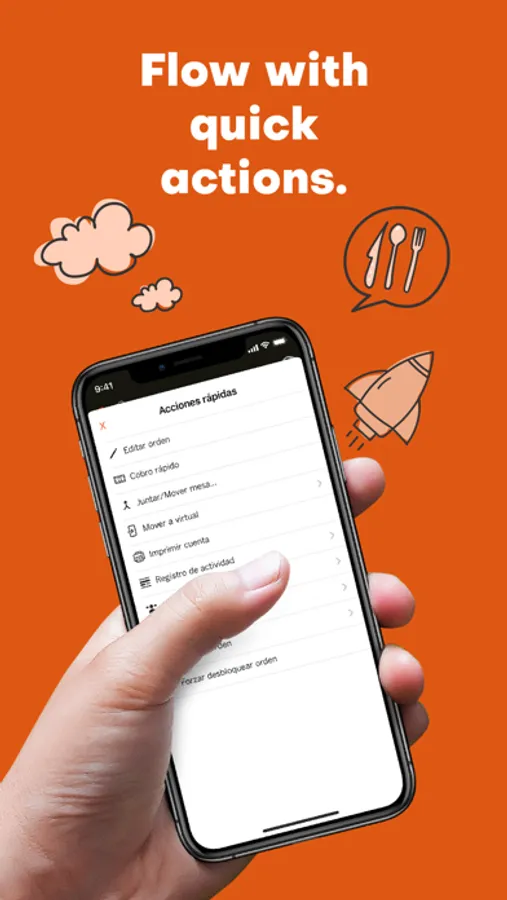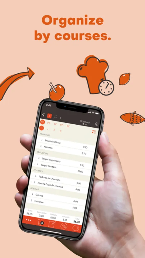 · Choose between 4 work modes or combine them all: tables, bar, take-away/delivery and night (bars/clubs).