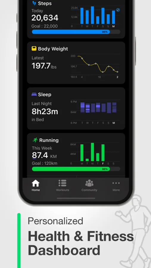 Track everything all in one place: Running, Cycling, Walking, HIIT, Intervals, Weightlifting, and more.