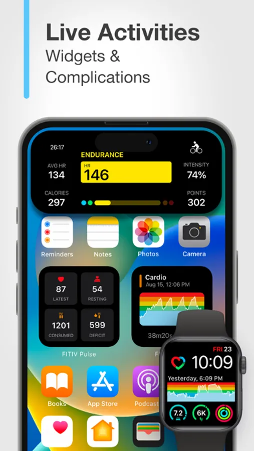 FITIV Pulse is the ultimate heart rate and cycling power zone training tool for Apple Watch. Stream workout data live from your Apple Watch to your iPhone. Track your daily activity with Complications, Widgets, and more.