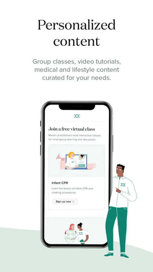Daily tips and virtual classes: Exclusive MD-approved resources and provider-led classes, from Anxiety Management to Newborn Care. (Employer-sponsored accounts)