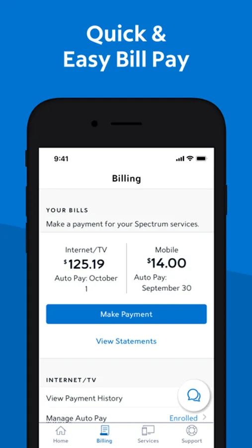 • Pay your bill for Spectrum Mobile, Internet, TV and Home Phone.
