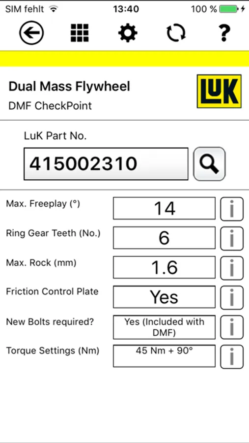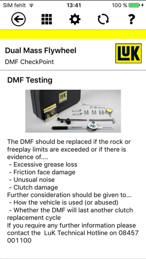 Simply enter a LuK DMF part number into the DMF CheckPoint app and you will instantly see all of the information you need to carry out a professional repair: