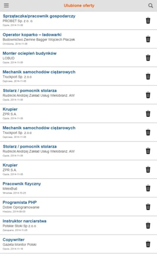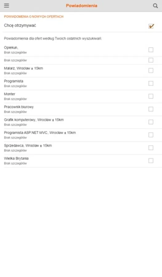 - Historia wyszukiwań ułatwiająca poszukiwanie i zapamiętywanie ofert pracy.
