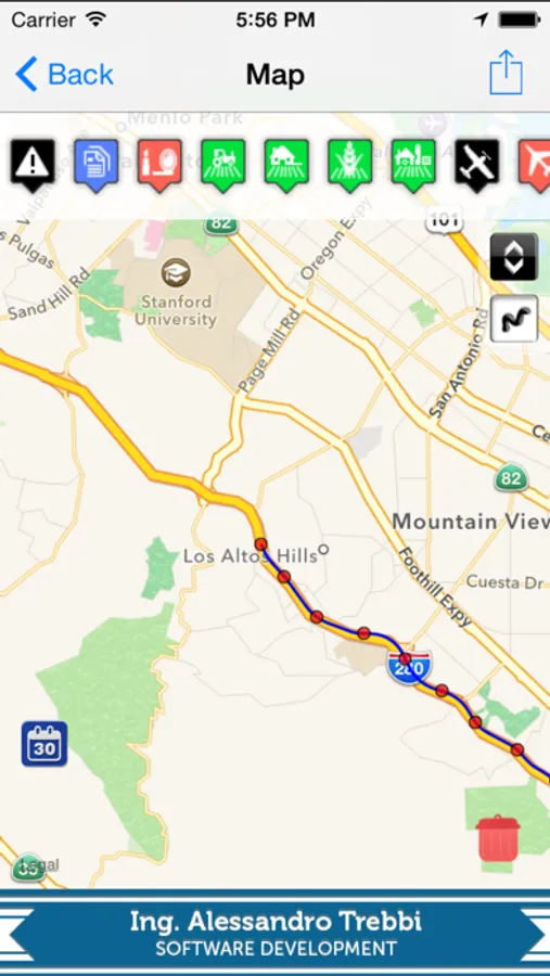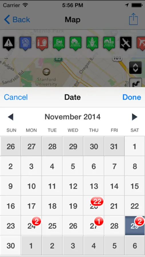 Trips can be selected by date range (by default, app shows the trips of current day); calendar shows the number of trips for each day.