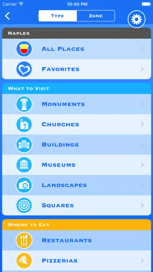 • More than 20 types of points of interest: Monuments, Churches, Museums, Palaces, Plazas, Landscapes, Restaurants, Pizzerias, Bar, Metro, Bus, Taxi, Airport, Seaport, Railway, Shopping Malls, Shops, Car Rental, Bike Rental , Cash Dispenser, Currency Exchange and Wi-Fi