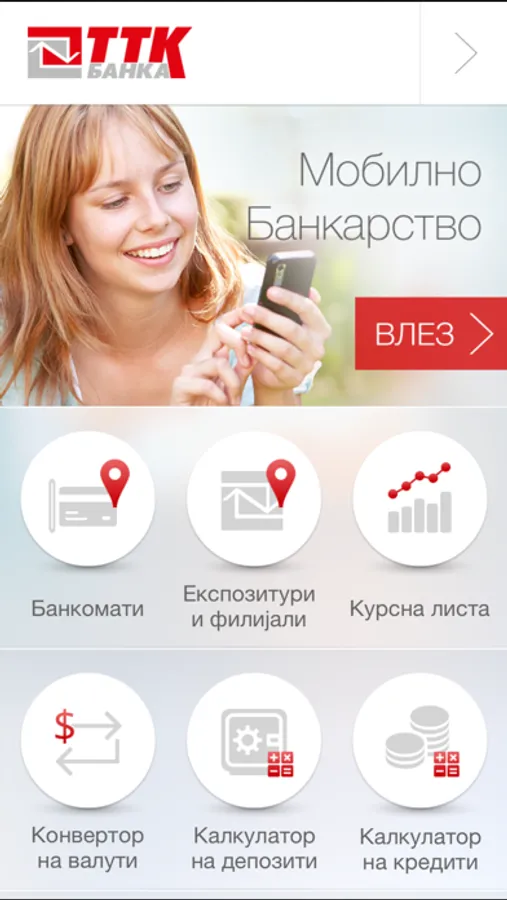 Апликација за мобилно банкарство за клиенти на ТТК Банка АД Скопје Ви ги овозможува следните опции: