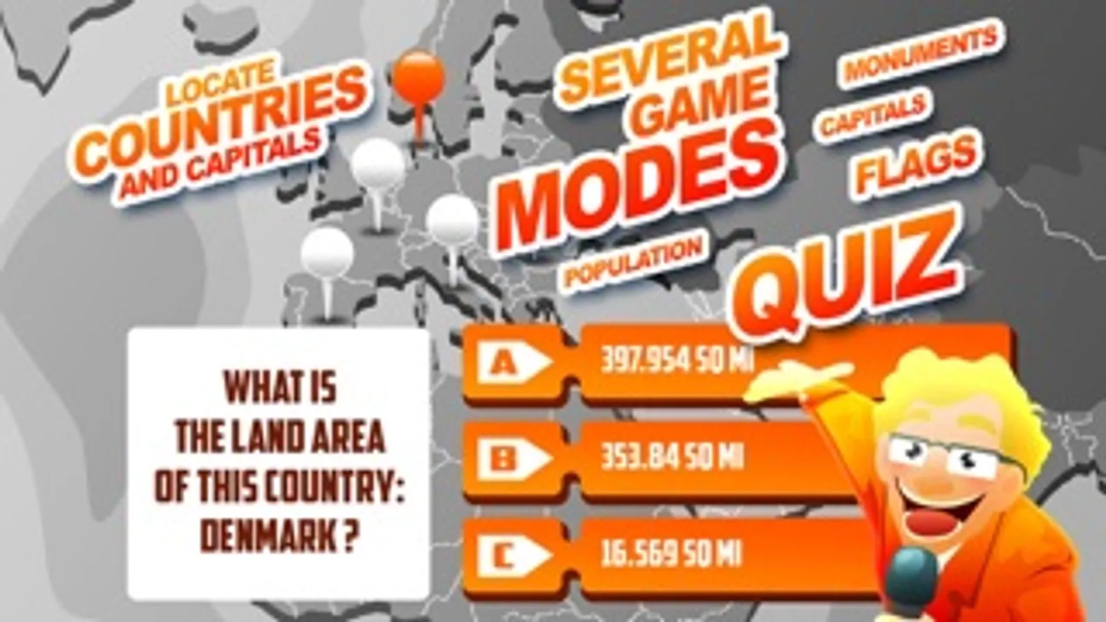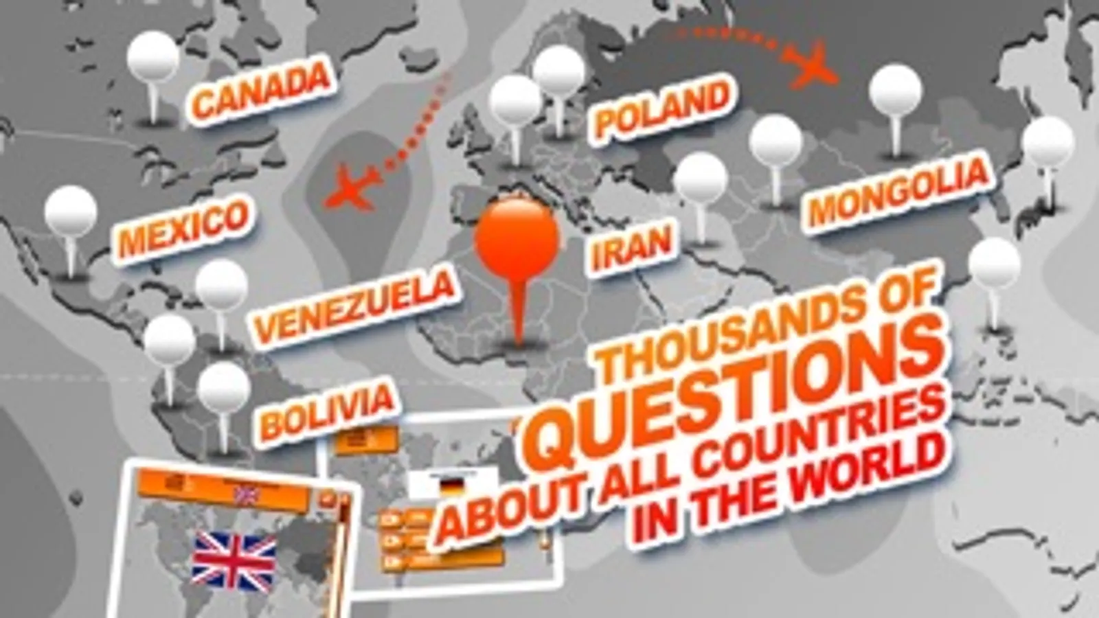 Try to become the world champion of geography by answering the 640 quiz while visiting the 160 countries of the world.