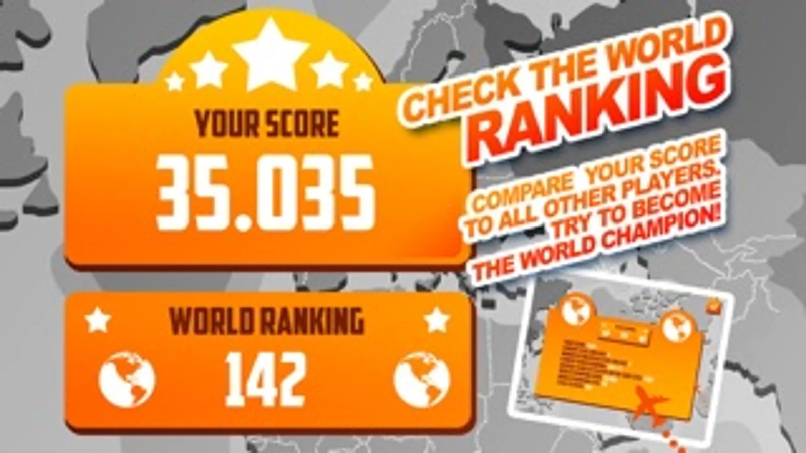 World ranking is available, so that you know your position compared to other players. You can also see your progression in the screen 'your score'.