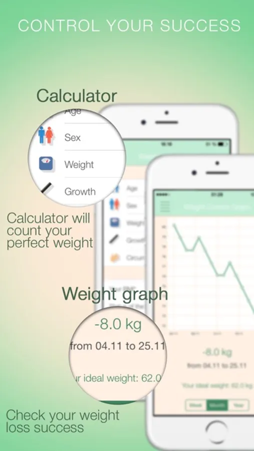 * Weight control graph is for checking your results. It is based on the data you added to the Diet Calendar, to show your progress!