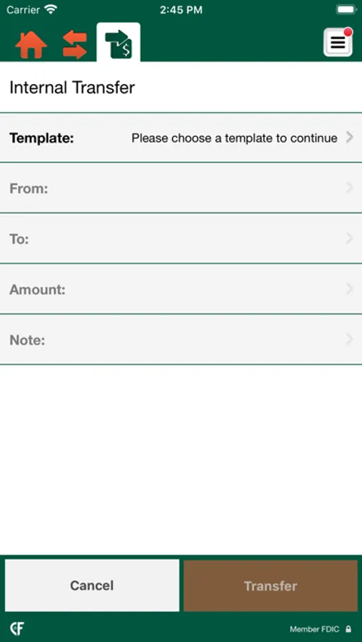 • Transfer money between accounts