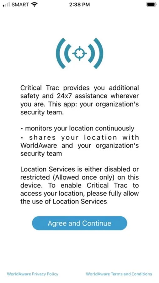 To use this app, your company must be a client of Crisis24 and/or its parents and subsidiaries and have a current license to our Critical Trac™ solution.