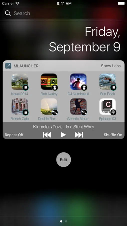 Put all of your favorite playlists, songs, albums, podcasts and audiobooks in your Music Launcher widget and then play them instantly right from the Notification Center. Unlike the dock or home screen, Notification Center can always be accessed with one swipe even if you're in an app, an app folder or even the lock screen.