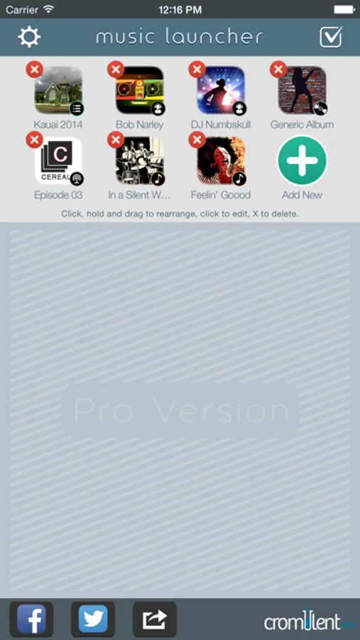 All of this is available for free! Upgrade to the Pro Version (with an in-app purchase) to enable 3 or more rows of launchers and add music controls in the widget. Please support further development on the app by buying the Pro Version today.