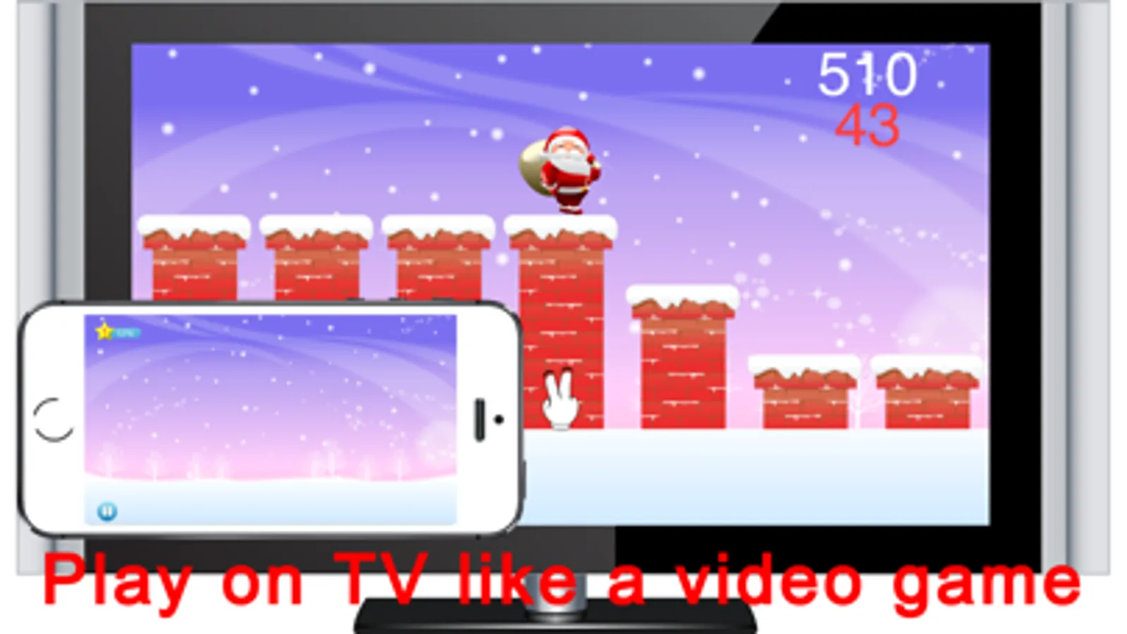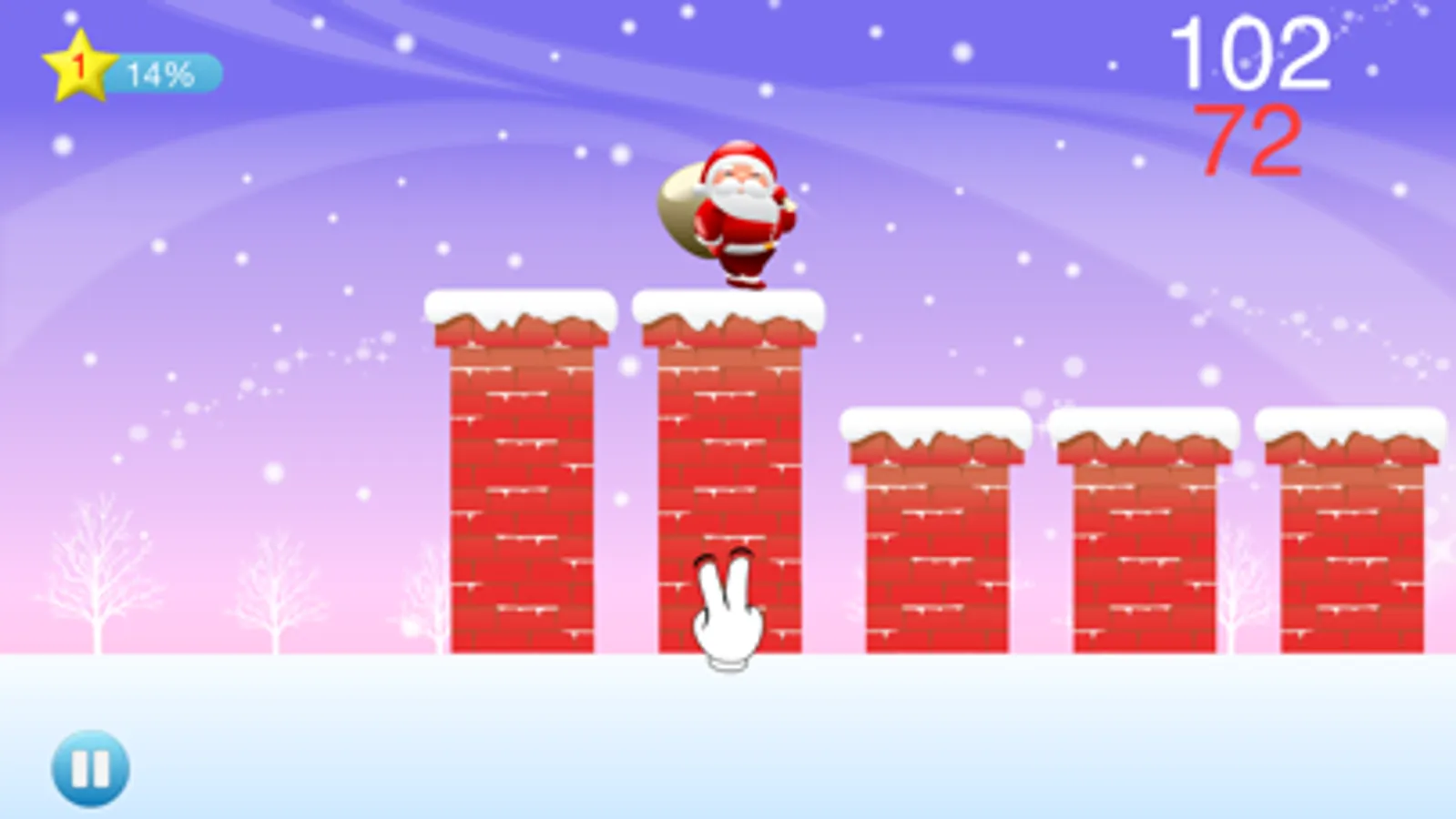 Use one or two fingers tap the screen to control Santa Claus, let he jump between the stovepipes.