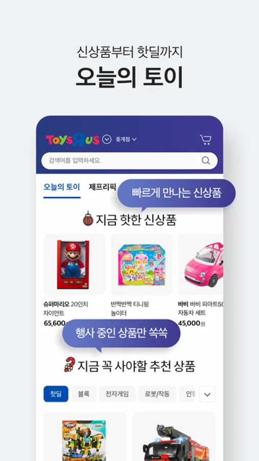새롭게 단장한 토이저러스에서 즐거운 쇼핑하세요.