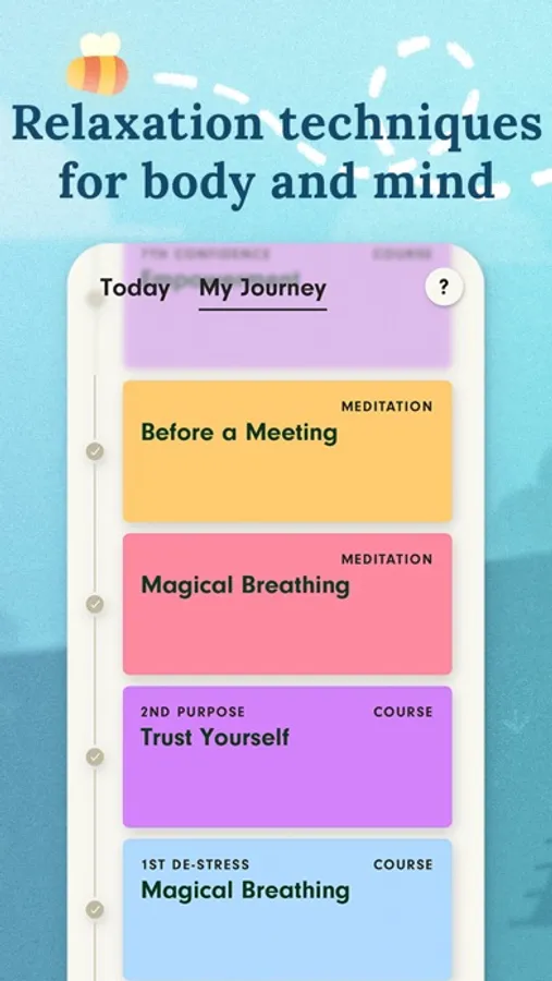 With 7Mind, practicing mindfulness becomes easy and accessible. All guided meditations are specifically designed to boost confidence and self-worth through breathing exercises, affirmations and visualizations. Repeating affirmations helps create space for positive thinking and reduces negative automatic brain responses. A personalized coach dialogue will guide you throughout your journey and help you keep up the practice!