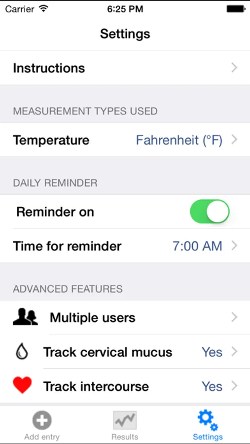 - Track basal temperature in Fahrenheit and Celsius