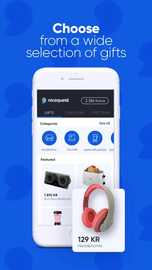 - Choose your gift, donate your Korus or redeem them for monthly prize draws.