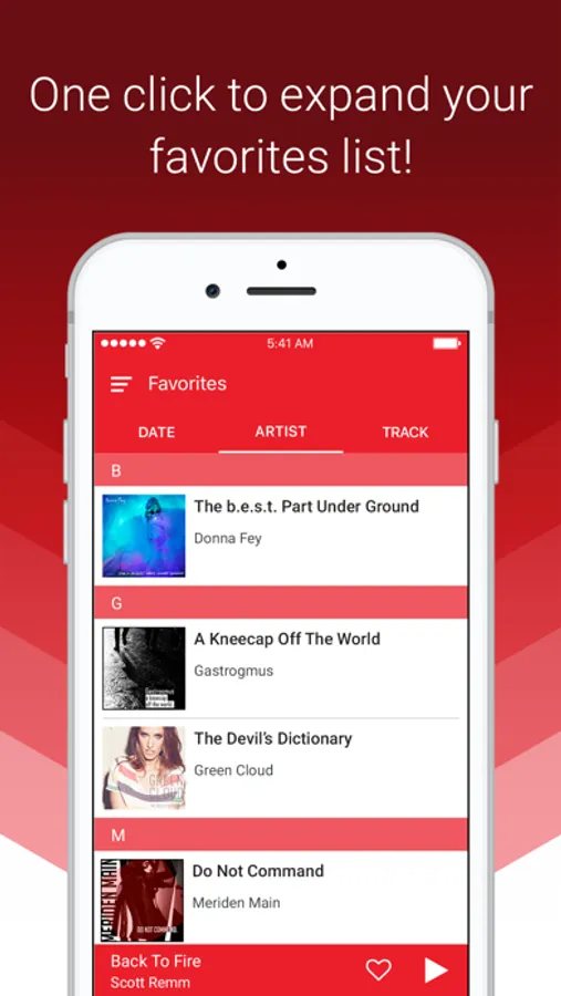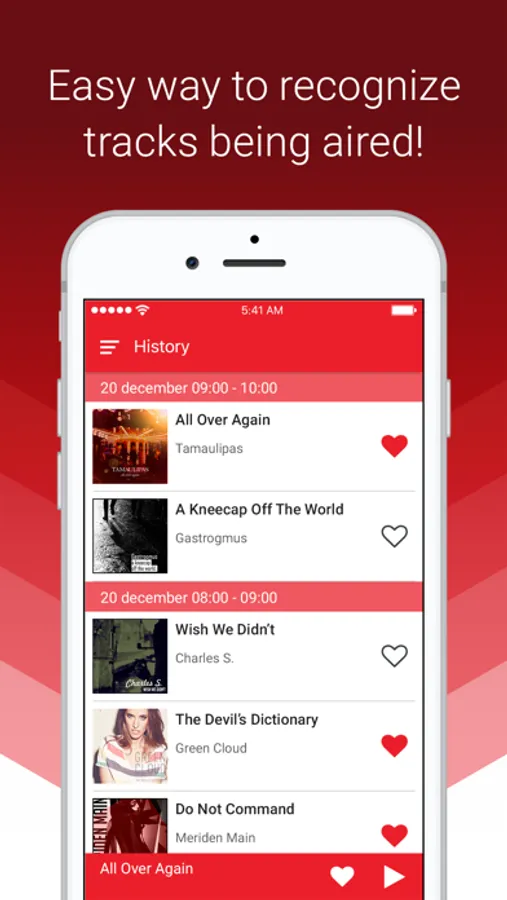 • Easily add tracks to your favourite by simply clicking the «heart» icon.