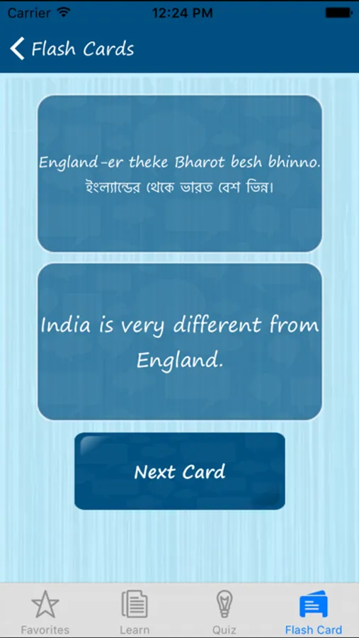 Build knowledge from scratch or refresh your Bengali grammar. The app easily enables you to improve your Bengali vocabulary and pronunciation, remember new words using Bengali Flashcards, learn the alphabet in Bengali or test your Bengali language knowledge with our fun Bengali quiz. Used as an English to Bengali dictionary or Bengali learning app, "Learn Bengali Quickly" has several handy features that helps you with effective language learning.