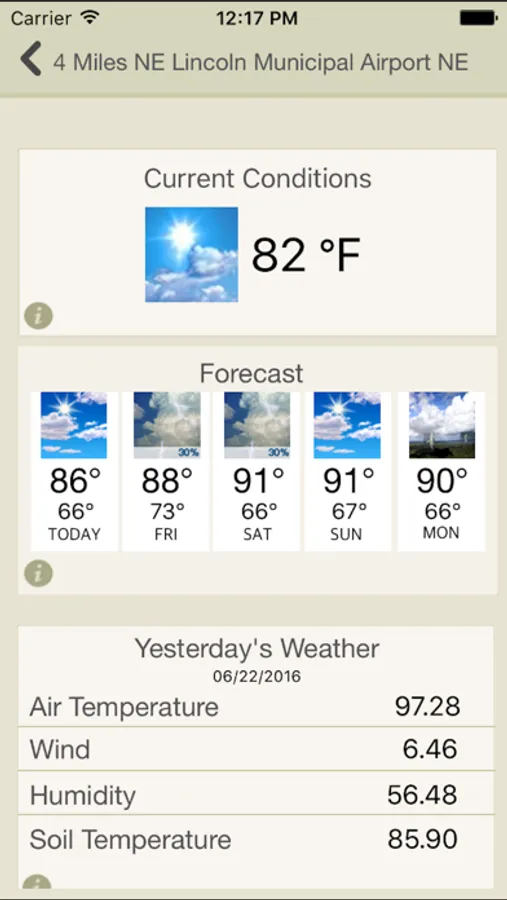 AgriTools provides easy access to location-specific climate and weather information important to the agricultural industry in Nebraska. Data from the High Plains Regional Climate Center, National Weather Service, and Nebraska State Climate Office allows the user to view recent data and forecasts for their current location or other desired locations. AgriTools also provides quick access to related University of Nebraska - Lincoln Extension apps and websites.