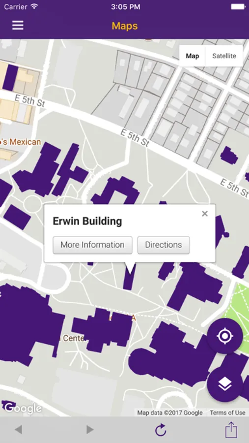 Maps: Search campus buildings by name, pinpoint them on the map, and see their location relative to your own.