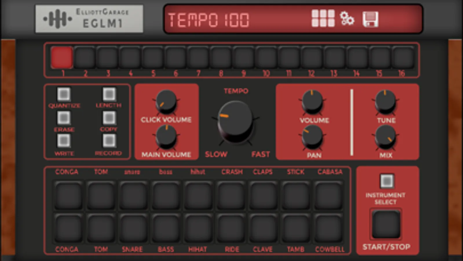 ElliottGarage presents EGLM1, a drum machine that emulates the vintage hardware heard in the music of the 80's popstars.