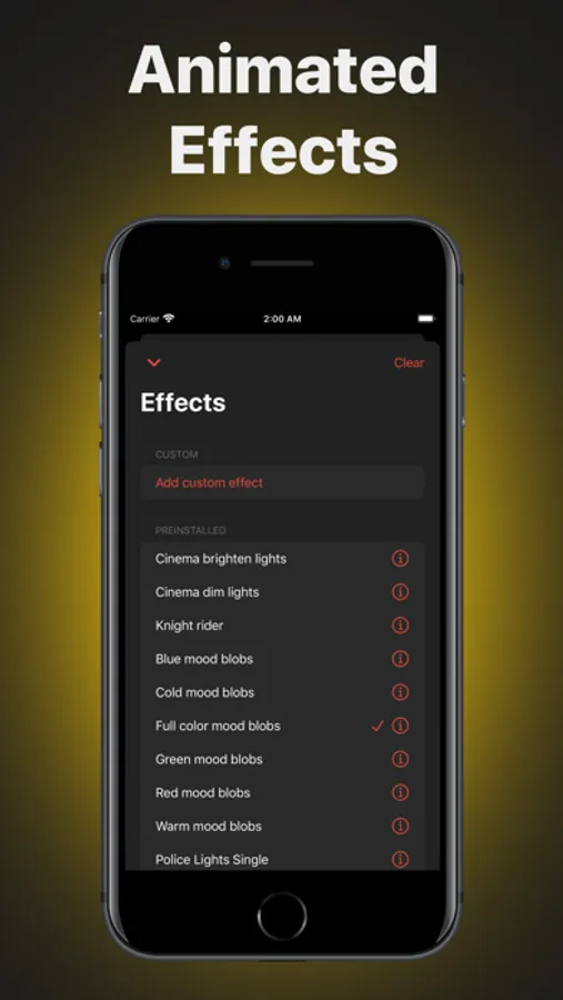 Use the today widget or Apple Watch app to change the light in your room in seconds without opening the app. Gain quick access to your last-used color or effect and clear the light with ease.