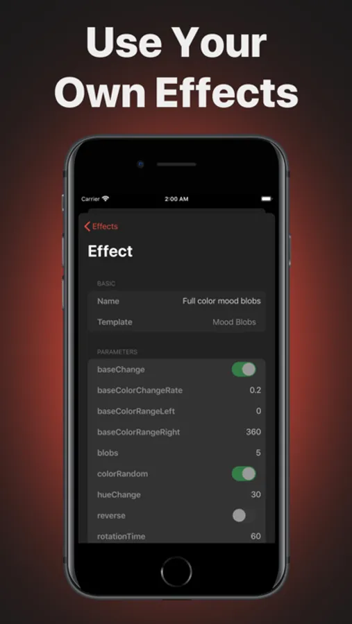 Hyperion comes with plenty of preinstalled effects which can be used with Hyperion Remote. These include colorful mood blobs, strobe, rainbow swirl, and others. Additionally, you can customize all effects and create new ones with this app.