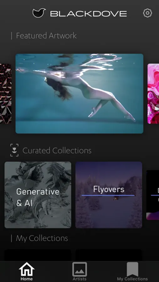 Blackdove delivers the most compelling digital video artists to your home or office environment. Build Collections and stream the art to your television using either the TV apps downloadable to your television or the Chromecast and ApplePlay tools built into the mobile app.