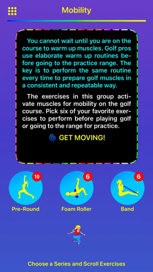 App provides high definition exercise images and helpful videos that have proved successful in helping golfer's of all abilities to play with more power and accuracy. You will get into the best shape of your life, enjoy doing it, while lowering your golf scores. It will also help with injury prevention and prolong your healthy playing life.