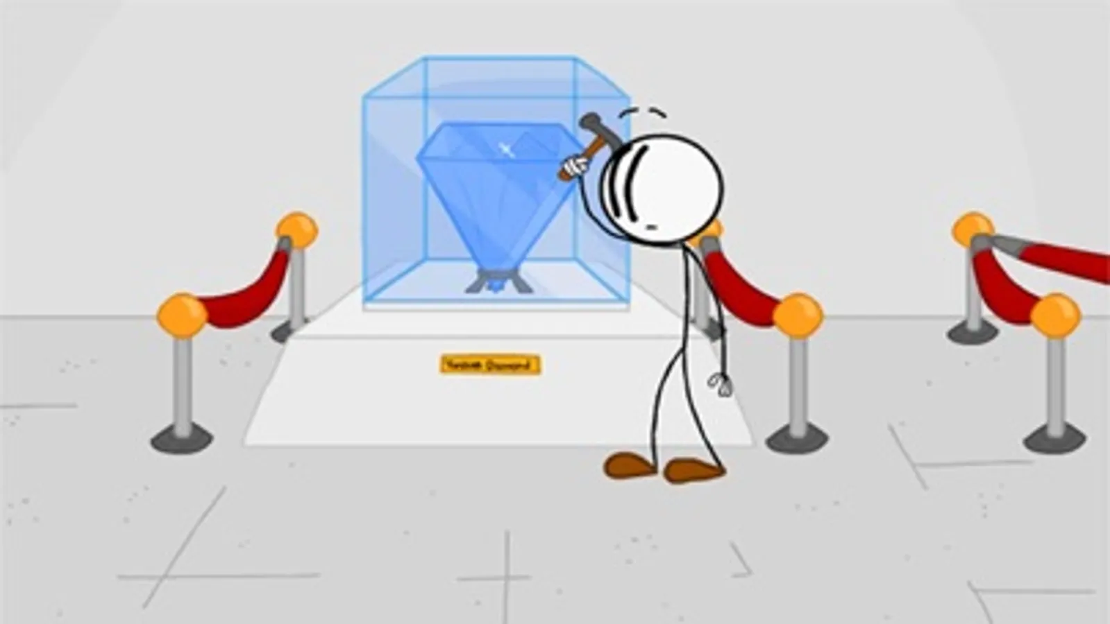 It's time to make some cash by Stealing the Diamond NOW! In Stealing The Diamond, you guessed it; you try to steal a diamond! An extremely large diamond at that! You have choices to make in your quest for theft! Will you rush in and risk everything or try to sneak your way to your prize? Whatever you decide, be careful as one wrong move will leave you without a diamond and maybe even less! Do you have what it takes to pull off the diamond heist and make it out alive? There are three different ways you can get the diamond and many more ways to fail. You can win the Aggressive way, the Undetected way or the Epic way.