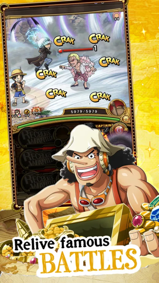Recruit your favorite ONE PIECE characters and build your dream pirate crew. Recruit, level up and battle with characters from the anime, from Buggy the Clown to Trafalgar Law.