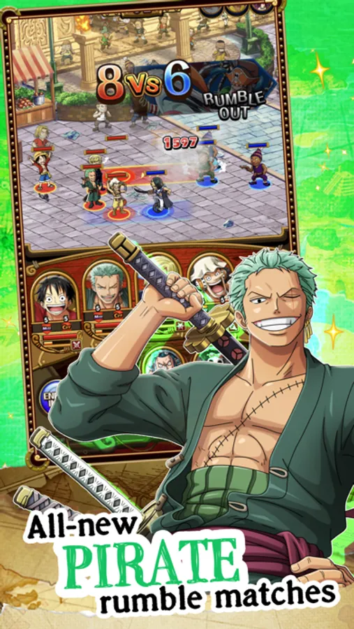 • Join Luffy and the Straw Hat Pirates on an RPG adventure to find the ONE PIECE treasure!