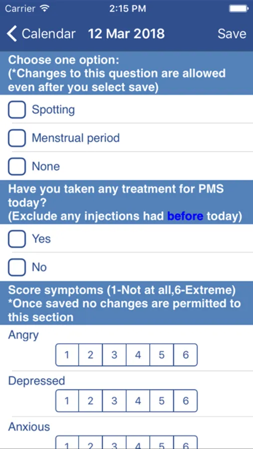 Designed by Gynaecologists, this easy to use app is intended for use by patients, clinicians, general practitioners and partners to diagnose Pre Menstrual disorders appropriately and aid in treatment provision. As well as clinical diagnosis and treatment monitoring, this app which costs less than a UK prescription charge can be used for research purposes.