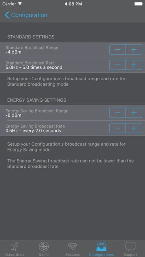• Manage your Beacons’ settings such as transmit power and broadcast rate