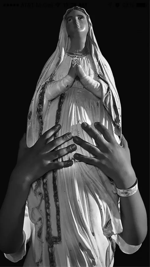 Dirty, chipped and broken in half, Our Blessed Mother was put together again. The man who repaired her requested that she be painted and have her broken hands mended. He wanted to make her new again and perfect. But the man who found her simply said, “No, she is broken, just like me. We all are broken and in need of repair. She represents the broken.”